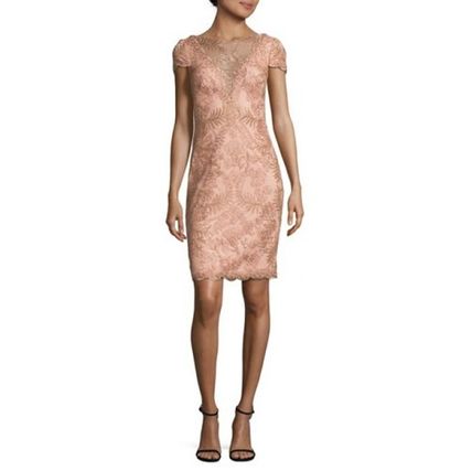 【ドラマ使用】Tadashi Shoji タダシショージ Lace Sheath Dress Powder ピンク系