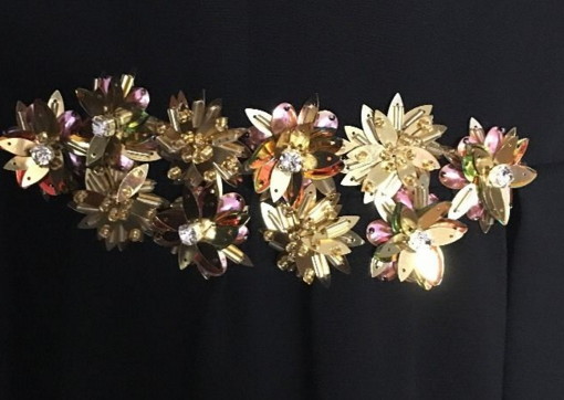 ウエストに輝くゴールドの花柄の飾りがゴージャスで素敵です!
