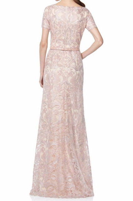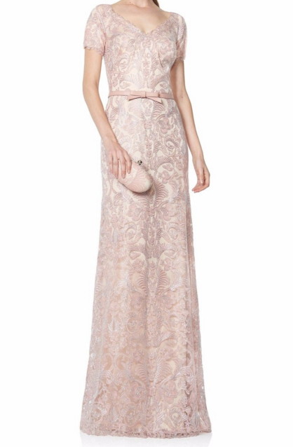 Tadashi Shoji タダシショージ Short Sleeved Lace Topped Gown ピンク